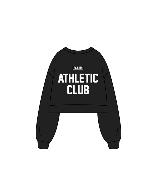 The Womens Crop Crewneck - Black - Activ8 - Left Chest / Back - White