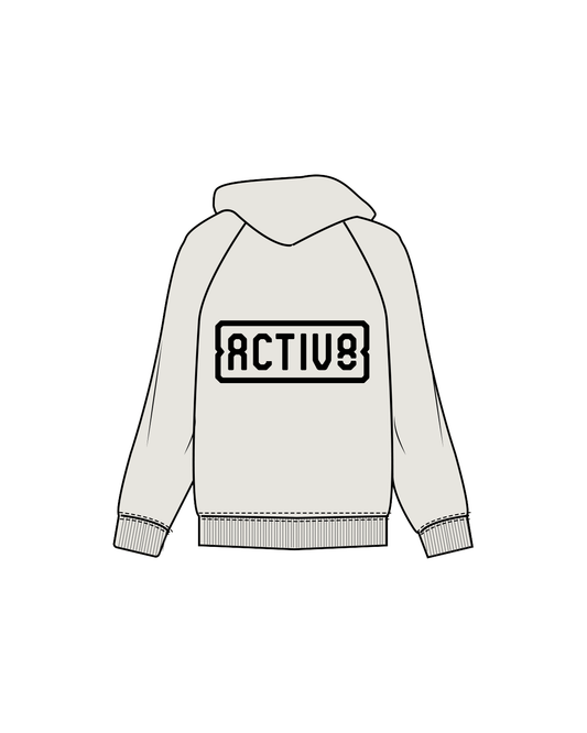 The Womens Hoodie - Washed Bone - Activ8 - Left Chest / Back - Black