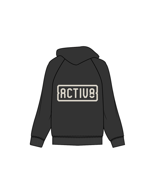 The Mens Hoodie - Black - Activ8 - Center Chest / Back - Black